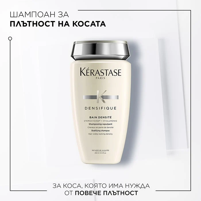 Шампоанът Kérastase Densifique Bain Densite се бори срещу изтъняването на корените. Сгъстява косата и заздравява косъма, правейки косата по-плътна, по-силна, по-еластична и по-устойчива.