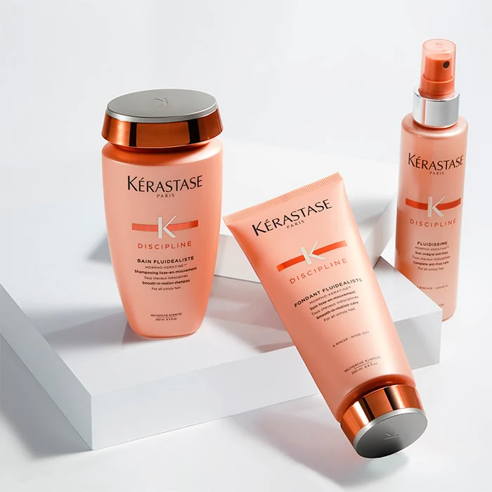 Термозащитеният спрей Kérastase Fluidissime предпазва косата от увреждане при изсушаване, изправяне или къдрене. Изглажда непокорната коса и улеснява разресването и стилизирането. Предотвратява наелектризирането и защитава косата от влага за 72 часа. Съкращава времето за изсушаване.